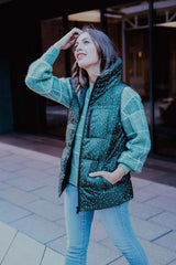 Purle Tribeca Puffer Vest - Green Print
